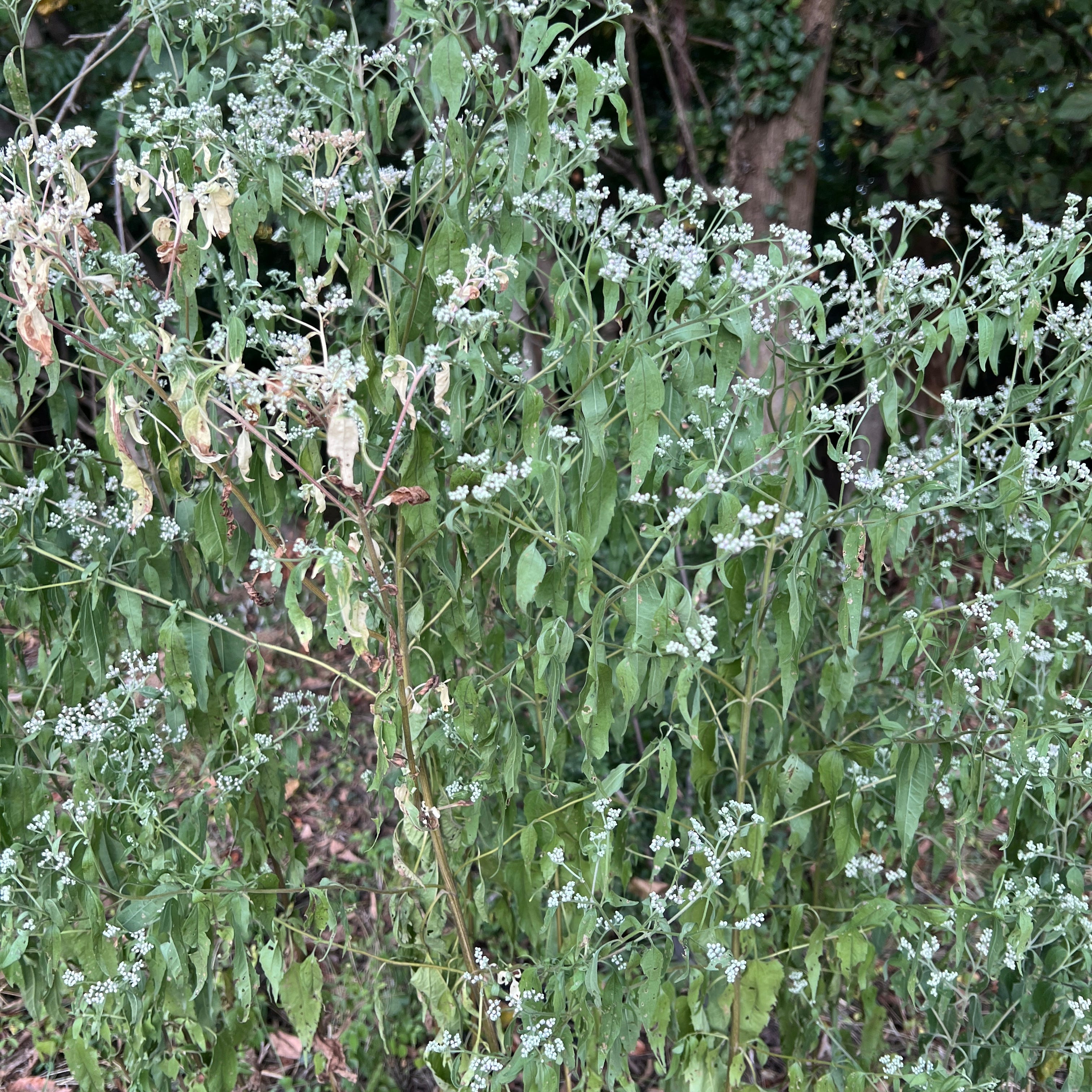 Ever since I started noting the plants and flowers around me as I bounce around the city, I feel like I meet a new plant every season. The Osage oranges plopping onto the sidewalk and the gingko leaves getting a tinge of yellow on their edges lets me know a crisp is coming. The persimmons on a neighbor’s tree are starting to balloon on the branches, the coneflowers are popping, and on my way to a friend’s event the other day, I finally met Boneset.
